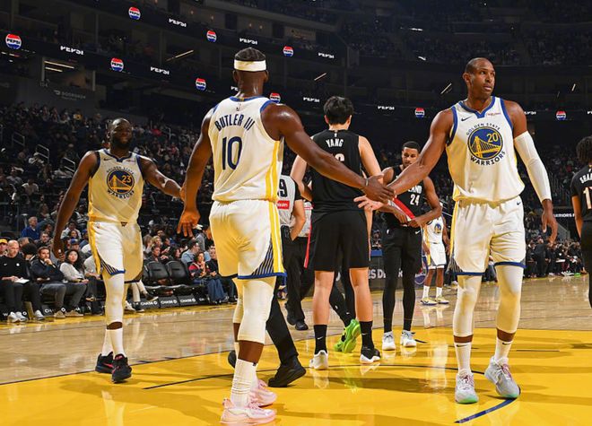准确来说,从离开森林狼起,巴特勒最近7个赛季,常规赛一直都饱受伤病困扰,平均每个赛季出战率只有68%,一个赛季有25场左右是不打的。在东部确实好混,战绩再差,从3月起开始追,怎么都能到附加赛门槛,可是西部呢?从美媒《BR》给出的预测来看,新赛季西部前六门槛是50胜左右,附加赛门票是45胜左右。何况巴特勒不断变老,已经年满36岁的情况下,等待他的无非两个结局:常规赛如果过度透支,能保持一定的战绩下限,季后赛恐怕就撑不住;如果常规赛划水,那库里可能真撑不住。