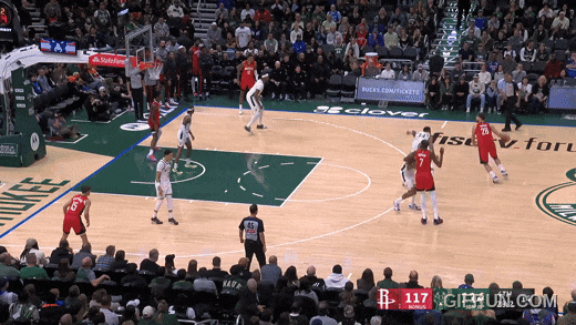 阿门龙精虎猛打三分之外,这球妙在扬尼斯被贾巴里牵扯在底角,无法补位。