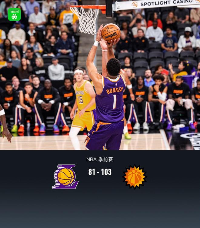 NBA季前赛 | 湖人81比103不敌太阳,东詹缺阵里夫斯20分,布朗尼12中1,布克24+7