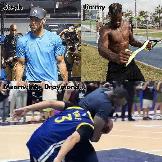 美媒调侃:库里和巴特勒都在备战新赛季,追梦在锁喉“普尔”