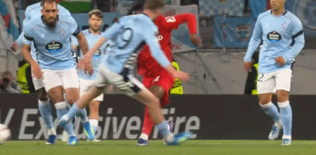 第10分钟,曼赞比横传,格里福兜射破门先拔头筹,弗赖堡1-0塞尔塔