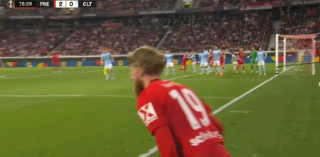 第78分钟,贝斯特角球开到门前,金特尔头球破门再下一城,弗赖堡3-0
