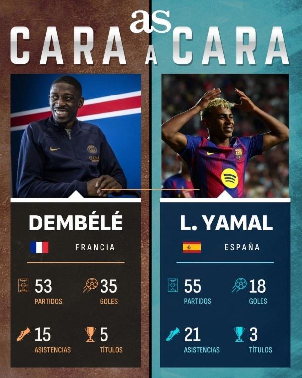 直播吧9月22日讯 2025年金球奖颁奖典礼北京时间9月23日3点在巴黎进行,《阿斯报》列出两大热门登贝莱和亚马尔的数据。